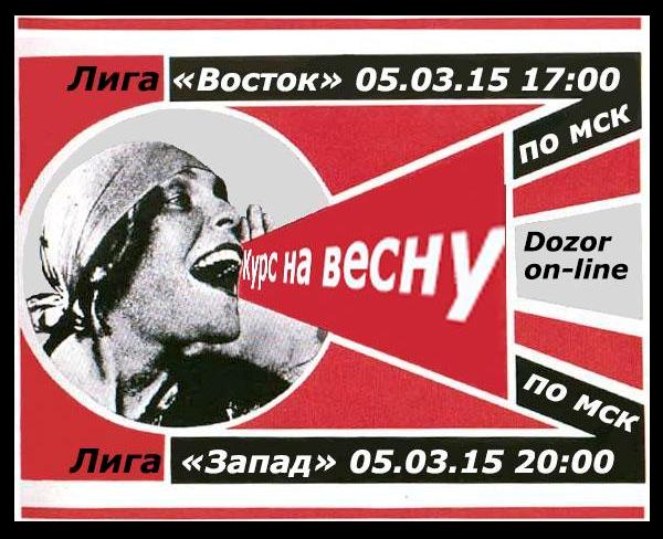 Кажется, 2015 год только начался, а вот уже и в проруби искупались, и блинов поели и, даже защитников отечества с праздником поздравили... а теперь КУРС НА ВЕСНУ!!! Впереди нас ждет море интересного и позитивного. Готовы? Проверим? Приглашаю Всех на игру Dozor on-line "Курс на весну!"