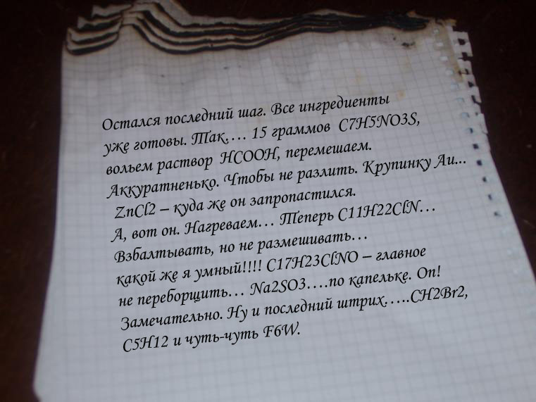 Подсказка 1 Подсказка 2 Комментарий Последнее задание. В нем даны формулы всех веществ, которые отгадали ранее. И одна формула лишняя. Нужно просто выяснить что за вещество здесь лишнее (первая подсказка). Во второй дано само вещество, название на-раз пробивается через любой поисковик. Две попытки с учетом, что кто-то сольет какое-либо одно задание и у него получится два неизвестных вещества.