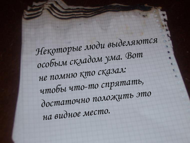 Подсказка 1 Подсказка 2 Комментарий В задании трудно не заметить первую фразу. И дополнительное указание на нее «увидеть суть за ширмой бессмысленых фраз». Ясно, что работать надо с ней. И ошибка сделана не случайно. Берем в первом слове первую букву, во втором - вторую, в третьем - третью и т.д. и получаем слово АУРУМ. Намек на действия в первой подсказке, а во второй уже конкретный алгоритм решения показан.