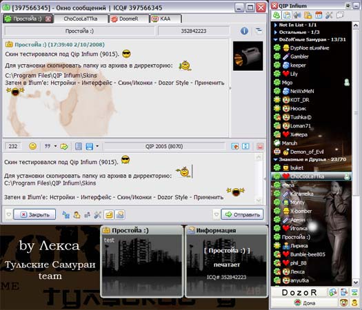 | Скин для QIP Infium от Лексы (Тульские Самураи) г.Тула | скачать | | | |  | | WinAmp | | | Скин от FlipMode (Норильск) | скачать | | | |  | | | | | Скин от semoha (DReam team - Магнитогорск) | скачать | | | |  | | |